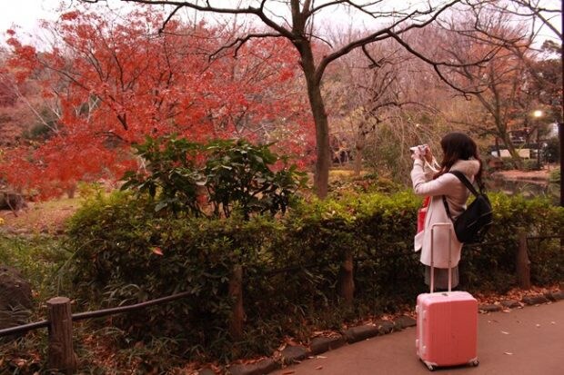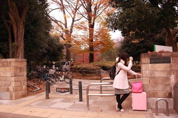 雪景色な北海道から来たため、紅葉が残っていることに驚き! 都会の真ん中でも木々が生い茂り、池もあり自然が豊かで、すっかり気持ちがなごみました。