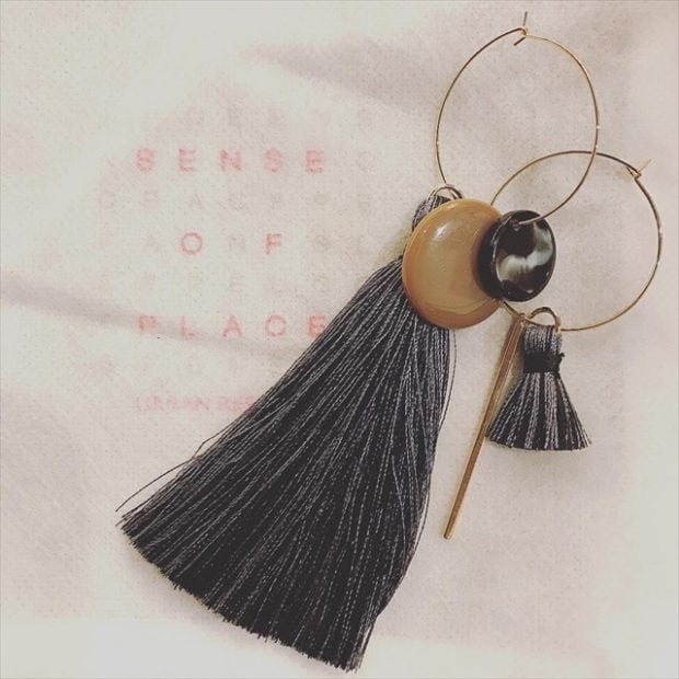 同ブランドで大人気の、タッセルデザインのピアス。ピアスについた丸いパーツやタッセルを、ネイルと合わせてスモーキートーンにするとさらにおしゃれ!