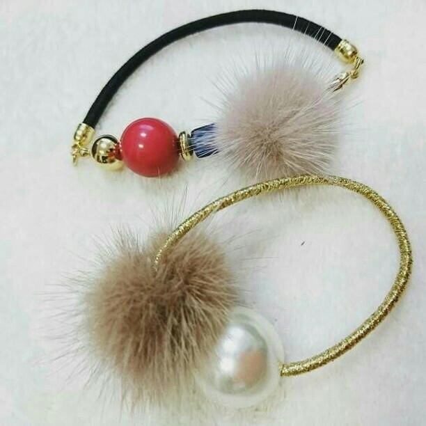 ファーアイテムにはヘアゴム式もありますよ! ポニーやお団子の結び目隠しとして使っても良いですね。
