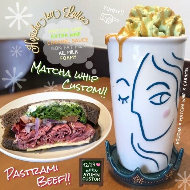 ■Wお茶カスタム! 抹茶ホイップで癒しのほうじ茶ティーラテ