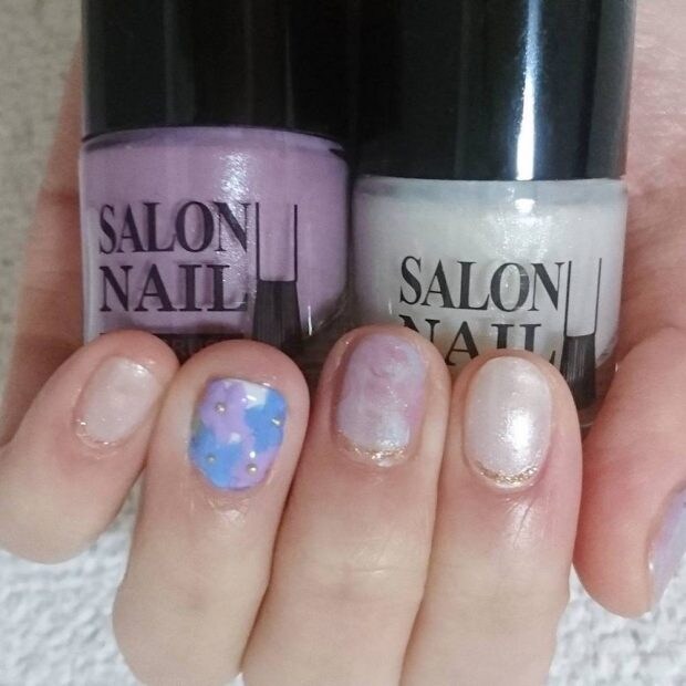 こちらの方はサロンネイルエナメルに、NAILHOLIC を組み合わせてアレンジをしています。淡いカラーで春を先取り!