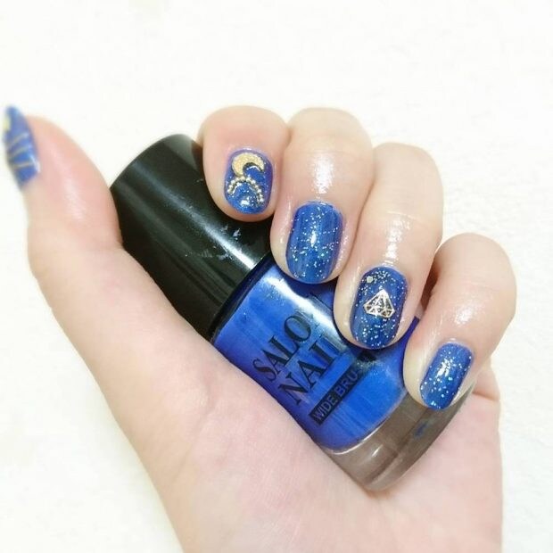 こちらの方はサロンネイルエナメルに、クレヨンタッチミーのネイルを重ね塗りした作品です。どちらも100均で揃ってしまうマニキュアなのに、こんなに美しい指先に仕上がるとは驚きですね!