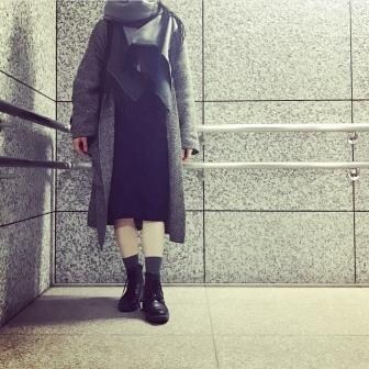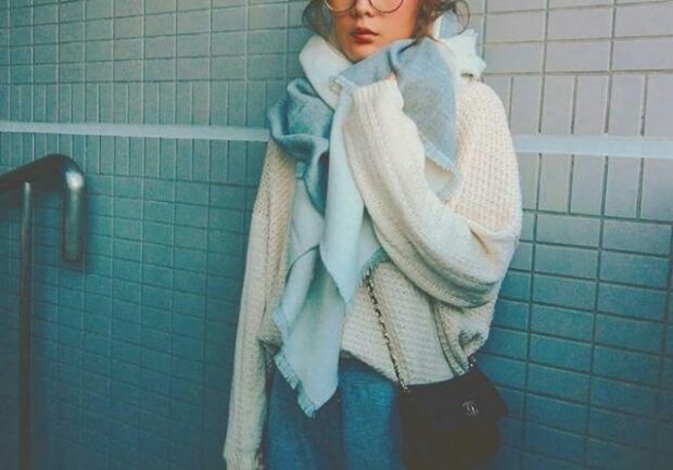 ホワイトは甘さを演出できます。マフラーのように使用して、リバーシブルカラーのグレーがちら見えするのがオシャレ!