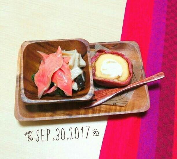 こちらは100円の正方形小皿、300円の長方形中皿のセットに、同じくナチュラルキッチンの木製フォークを合わせています。フォークは2本セットで100円なので、1本あたり50円。このオシャレな組み合わせが1セットたったの450円で揃えられます!