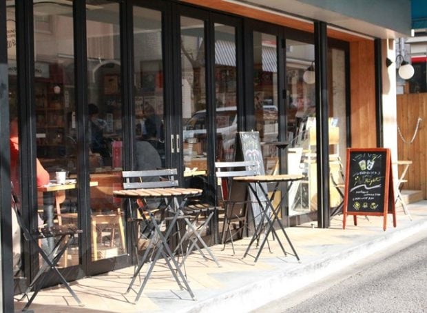 ラカグから道路を挟んで向かいにあるBOOKカフェ「かもめブックス」。