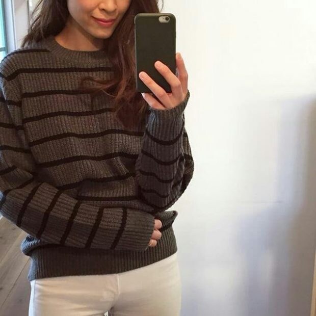 こちらは、ボーダーニット。メンズならではのサイズ感やデザインをシンプルに取り入れるのもオススメです。長身の女性でもゆったりとした着こなしを楽しむことができますよ。