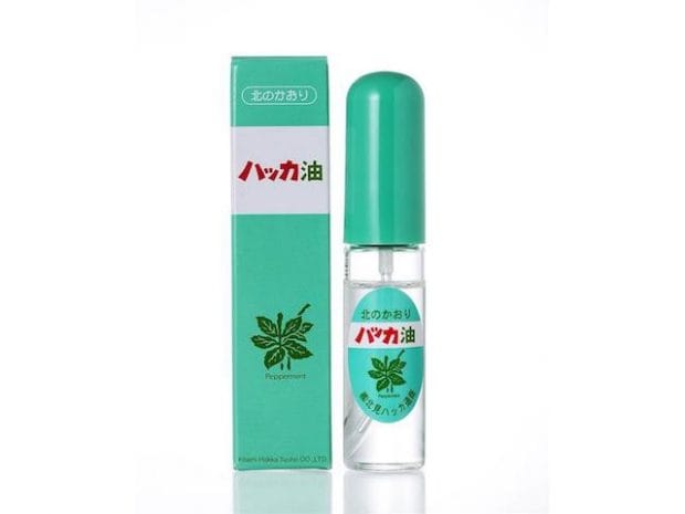 北見ハッカの「ハッカ油スプレー」、1,000円(税抜)。天然の食品添加物で、食品の着香料として使われるスプレーです。メントールの清涼感ある香りが特徴です。