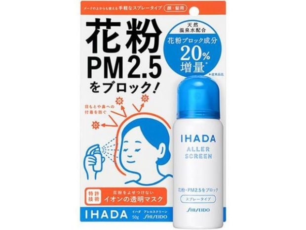 同じく「アレルスクリーン」シリーズには、メイクの上からでも使える、花粉吸着防止スプレーもあるんですよ。「アレルスクリーンスプレー」は50gで900円(税抜)、100gで1,600円(税抜)。花粉の反発・吸着防止の技術は、資生堂の特許技術!