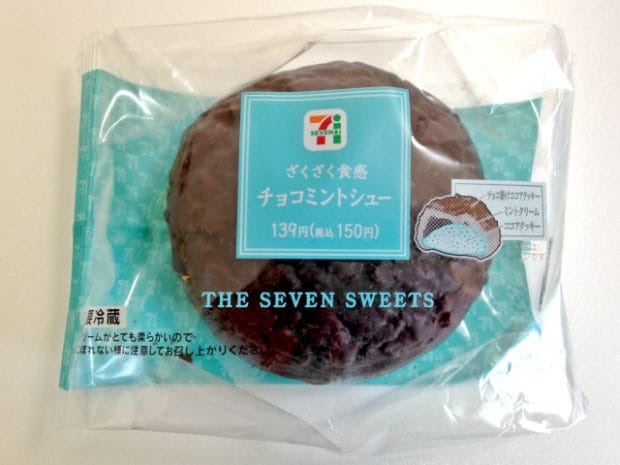 2017年秋に販売された「ざくざく食感クッキー&クリームシュー」の新フレーバーとして登場したのが「ざくざく食感チョコミントシュー」。150円(税込)とお手頃価格です。