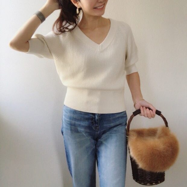 ■春夏に向けて持っておきたい コットンクロップドVネックセーター