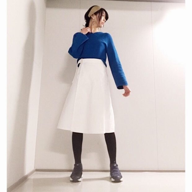 女性らしさを演出できる、Aラインシルエットが魅力の「ベルテッドラップスカート+E」。オン・オフ共に大活躍間違いナシのホワイトは、ゲットしておくと重宝しそう。スニーカーでハズすコーデも要チェックですよ。