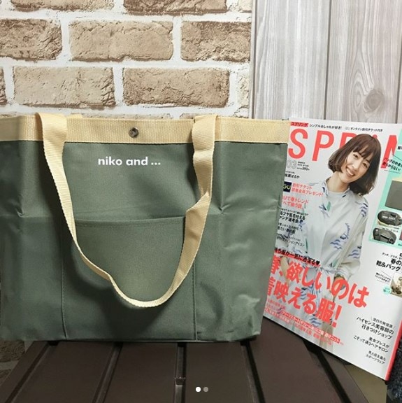 雑誌「SPRiNG」3月号の付録は、「niko and ...(ニコアンド)」とコラボレーションしたトートバッグ。A4サイズがすっぽり入り、書類やノートパソコンも収まります。