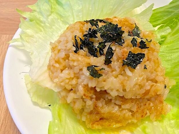 おにぎりは好きな具でOKですが、ソースと絡んだ時のコクは、マヨ系ならではかも。さっぱりとしたレタスと一緒に食べれば、ぺろりと完食です。あっさりとした鮭おにぎりなどで作る時には、卵を加えてチャーハン風にしても良さそうですね。