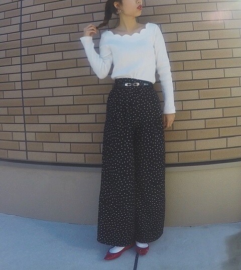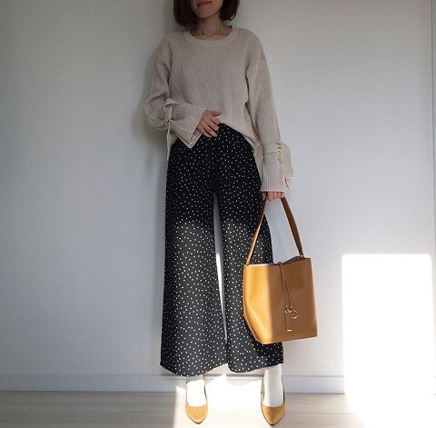 さりげないドット柄は、初めての人でも着こなしやすそうでしたね! モノトーンでまとめたり、明るい色をさし色に取り入れたりなど、1本あるだけで着回しの幅が広がります。春コーデに、GUの新作「ドットワイドパンツ」を取り入れてみては。