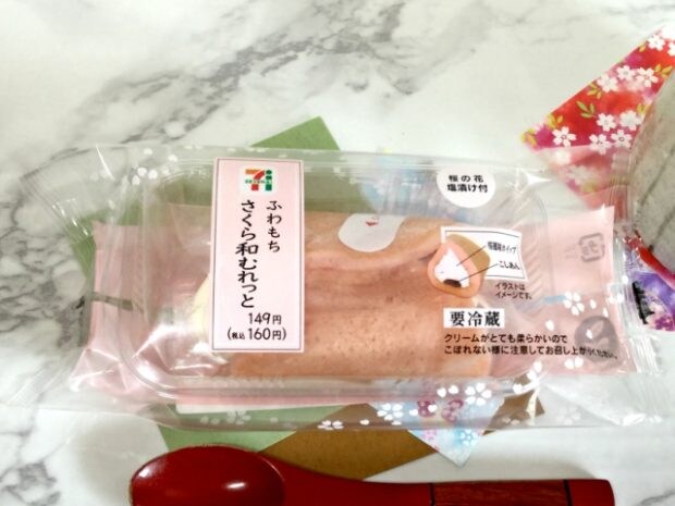 セブンイレブンの創作スイーツ「ふわもち和むれっと」にさくら味が登場(160円/税込) 。