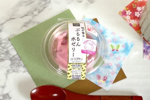 UchiCafe' SWEETSからは「桜が香るぷるるん水ゼリー」もピックアップ。こちらも150円(税込)で小さめスイーツです。