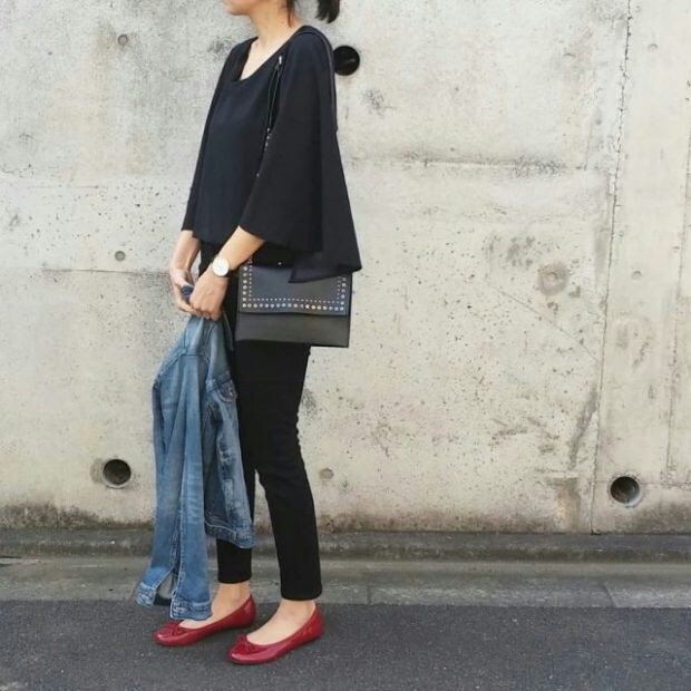 ブラックでまとめて、シックな装いにするのもステキ。休日コーデに留まらず、オフィスコーデにも使えるアイテムは即買い必須。オールブラックのコーデはバッグや靴などの小物にインパクトを加えると、さらにオシャレなコーデになりますね。