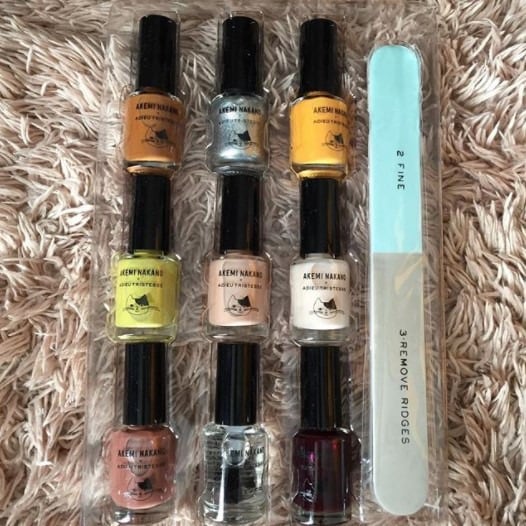こちらも豪華なネイルセット付録です。雑誌「大人のおしゃれ手帖」4月号の付録は、ヘア&メイクアップアーティストの中野明海さん監修の「アデュー トリステス 旬カラーを指先に 大人ネイル10点セット」。大人の女性に似合う8色のネイルカラー、ベース&トップコート、ネイルファイルの計10点が付いています。