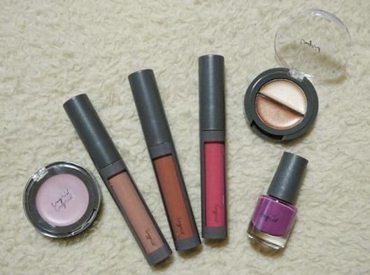 ラベンダーピンクのネイル、パールピンクのクリームアイシャドウ、ツヤ肌をメイクするクリームアイシャドウ、ライトブラウン&ヌーディーブラウン&ローズピンクのグロスと、春メイクに使えるアイテムばかり。