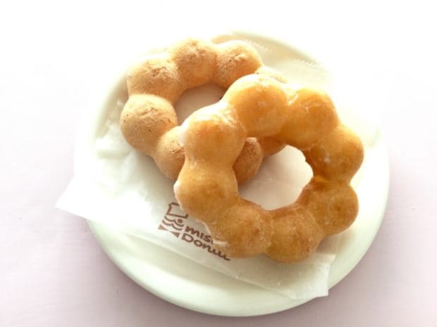 ポン・デ・リングは1つで232kcal、黒米や黒豆入りの黒五黒糖シュガーを使ったポン・デ・リング黒糖は215kcalと、2つとも200kcal越え。両方とも直径10cm、56gで、価格は108円(税込)でした。