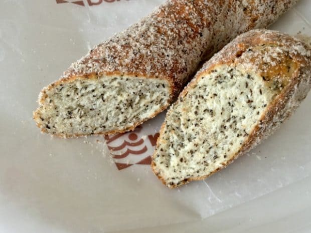 カットしてみるとこんな感じ。アールグレイの茶葉がたっぷりで、とても良い香りがしています。空洞がなくギッシリ詰まっている感じです。食べてみると、表面はちょっとサックリしているのですが、中はもっちり。油っぽさがなくシンプルだけど食べ応えがあるドーナツでした。朝ご飯にも良さそうです。