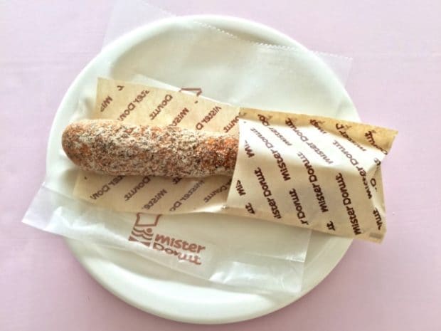 こちらが3月2日に発売された新しいドーナツ「紅茶のマンナンスティック プレーン」と「紅茶のマンナンスティック 黒糖シュガー」。