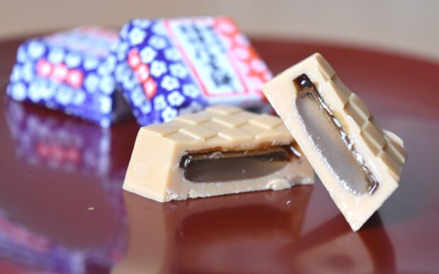 見た目は、チロルチョコのきなこもちのよう。カットすると、ちゃんとお餅と黒みつが入っていて、信玄餅味が再現されていました。お餅はグミのような弾力があり、きなこチョコレートで覆われていても存在感がしっかりありますよ。黒みつが濃厚で、きなこチョコレートと良く合う~! すごくおいしかったです。