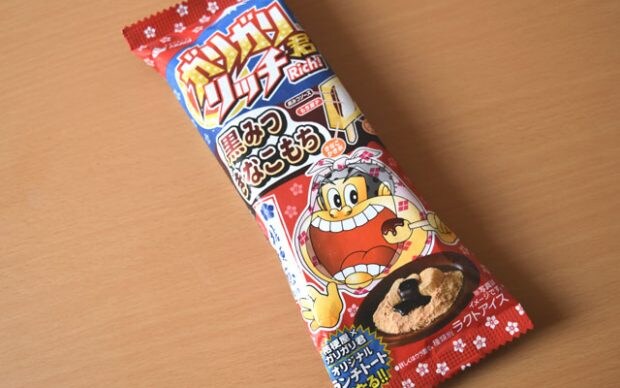 餅菓子、黒みつソース、きなこアイスがきなこアイスキャンディーで包み込まれています。餅菓子もきなこアイスも黒みつソースも全部おいしい! ……けど、これってガリガリ君と同じ味なのでは?? 食べ比べれば微妙な違いは感じられるものの、言われなければわからないレベルです。
