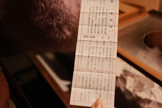 運勢は、というと……。小吉! 「恋と愛を育てましょう」とはまさに現在の試練……。その神社やお寺にもよるけど、実は小吉っておみくじの順番でいうと上から数えた方が早いらしいんですって。そう思うと、すっごく前向きな気分になってきました。