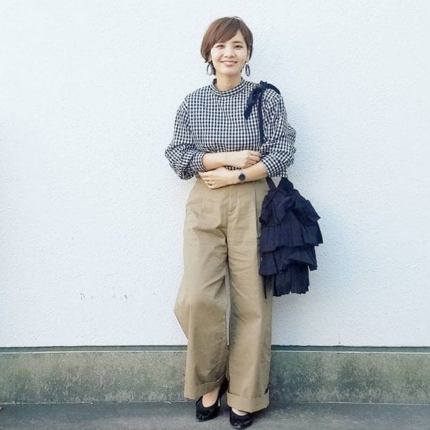 トレンドのギンガムチェックもtitivateで。シンプルなチノワイドパンツや小物類を合わせることで、幼くなりがちなギンガムチェックもカジュアルになりすぎないスタイルに。