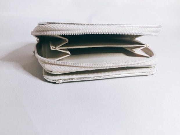 コンパクトながら、お札入れが2つ、カード入れは4つあるため、収納力もバッチリ。小銭入れも2層式で機能的です。ミニバッグで出かける時や、旅行時のサブ財布にもぴったりですね。価格は、920円(税込)。