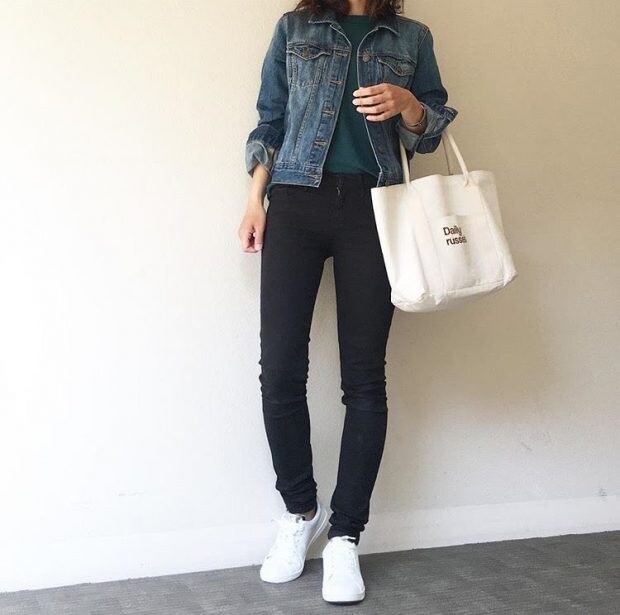意外と着回しやすいのがグリーン。ジーンズやブラック系のボトムスとも相性抜群。トップスに色味を持ってくることで、スタイリングに明るさをプラスします。