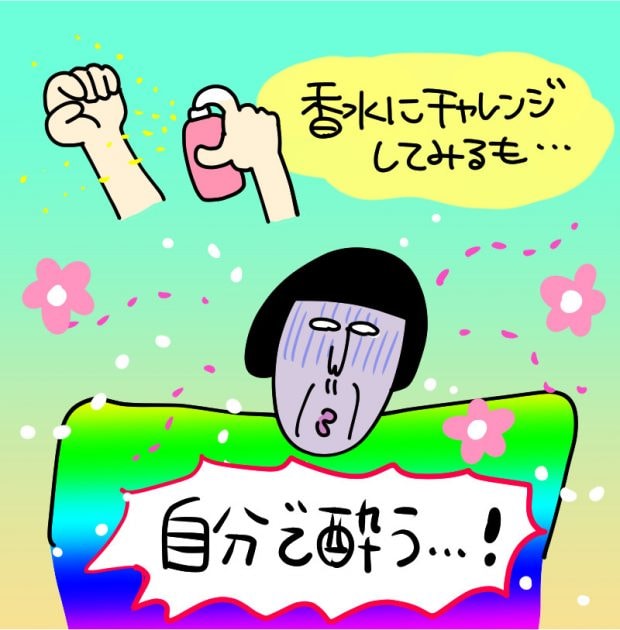 どうにかしてニオイを定着させようと、いい香りのボディクリームやシャンプーを使ってみても何故かすぐに香りが飛んでしまう。同じものを使っている妹は残ってるのに! それならと香水に挑戦してみると自分で酔うし、ちょうどよく香るってめちゃくちゃ難しい。