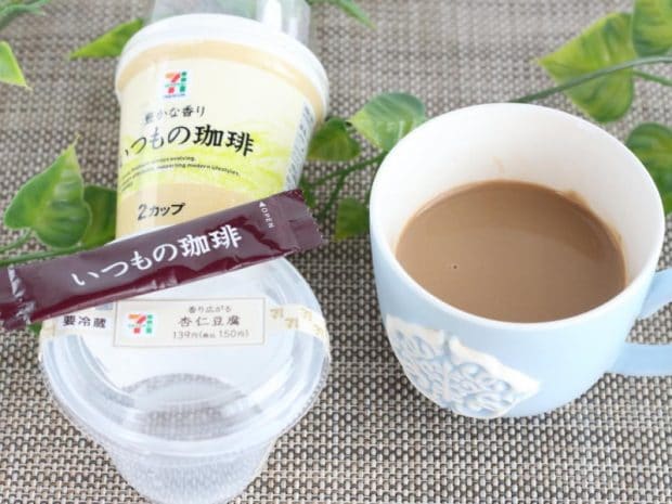 3つ目は「コーヒー杏仁」です。用意するのは、セブンの杏仁豆腐とコーヒースティック一本。