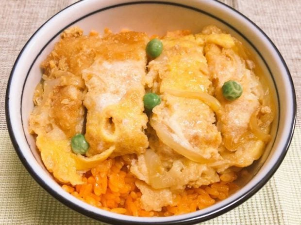 セブンイレブンのチキンライスに、同じくセブンイレブンのカツ煮を乗せるだけで完成する「かつチキ丼」!