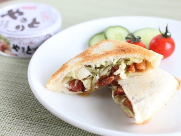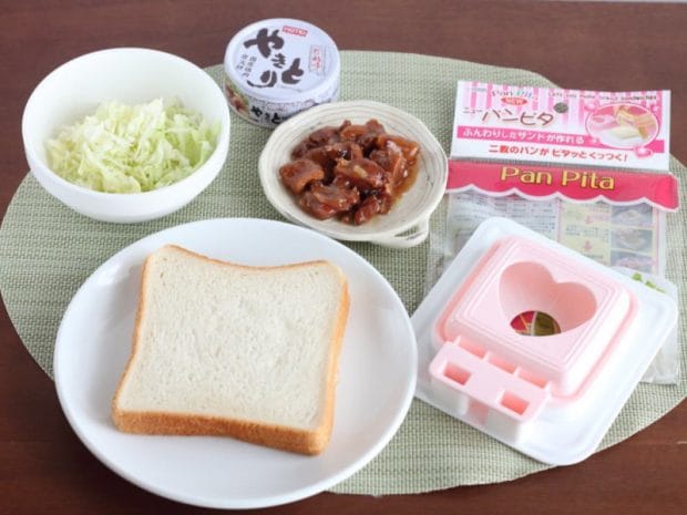 材料はパン2枚(薄めの方がサンドしやすいです。筆者は6枚切りのパンをスライスして2枚にして使用)。そしてやきとり缶とキャベツのみ! それと、ホットサンドを作るのに便利なグッズをセリアでゲットしました。