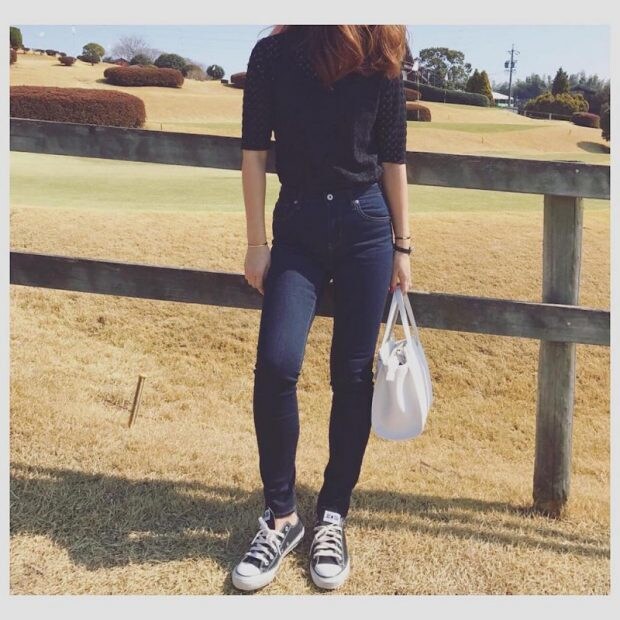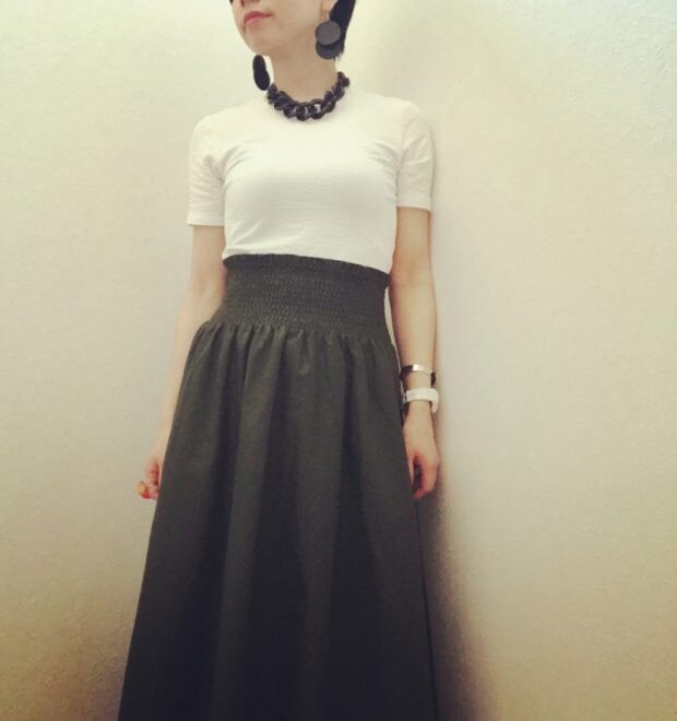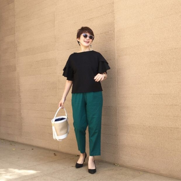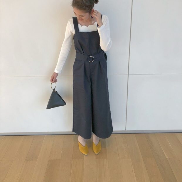 おしゃれインスタグラマーさんの投稿が特に多かったのは爽やかなブルー。上品カラーで高見えコーデが完成です。リブスカラップネックTはオフホワイト、グレー、ブラック、レッド、ネイビーの5色。
