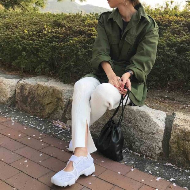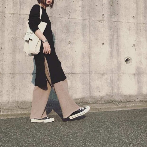 パンツアイテムもスリットの投入で今年っぽさが一気にアップ。あえて肌を少し見せることで、カジュアルコーデもレディな装いになりますね。