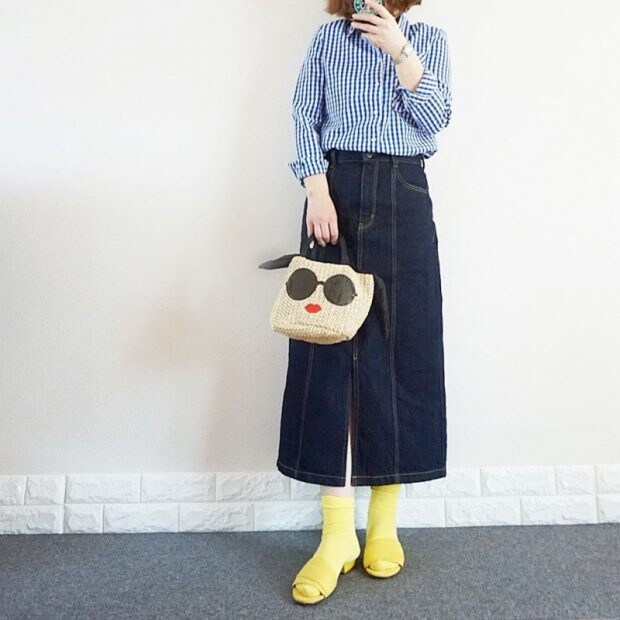 プチプラでおなじみのGUからもデニムフロントスリットミディスカートのアイテム名で販売中。重めな印象になるミドル丈のスカートも、スリットが入っていることで軽やかに着こなせますよ。