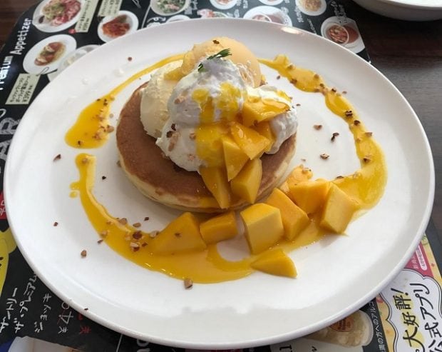●完熟マンゴーとふわふわマスカルポーネクリームのパンケーキ(799円)