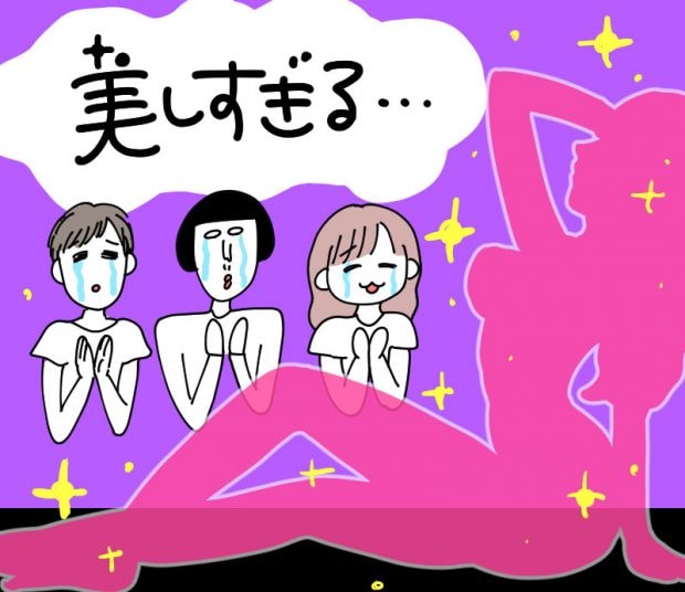 本当に見てもいいのかな? と、ゆっくりステージに目をやると、重力を一切感じさせない胸とお尻。目の前にいるはずなのに美肌フィルターをかけたような白くてなめらかな肌。どこを見ても美しく、日本昔話によく出てくる「天女じゃ~~~!」というシチュエーションはまさに今、目の前で起きていることを指すんだなあ……と、夢心地で考えていました。