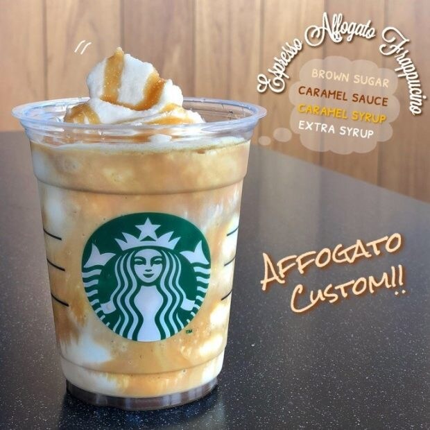もともと使用されているホワイトモカシロップをキャラメルシロップに変更することで、キャラメルの風味がエスプレッソのほろ苦さとマッチします。私はコーヒーが苦手なのでキャラメルシロップをエクストラに、さらにキャラメルソースとブラウンシュガーを追加することで、甘さをプラス。これで、キャラメルマキアートのフラペチーノバージョンのような味わいが完成です♪