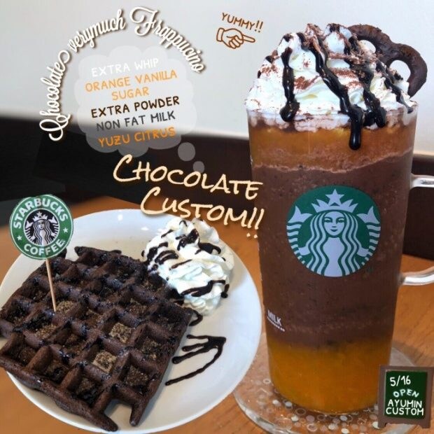 カスタム内容にあるエクストラパウダーは、中に入っているダークモカパウダーのこと。こちらを多めにしてより濃厚に! 柑橘系のゆずシトラス果肉を加えることで、甘さの中にさっぱり感が出て、オランジュショコラのような味が楽しめちゃう。
