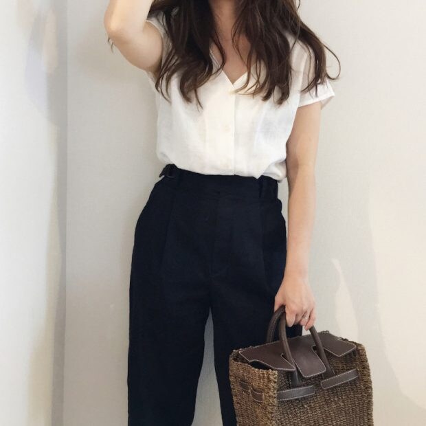 ふんわりトップスとかごバッグで夏らしいスタイルに。