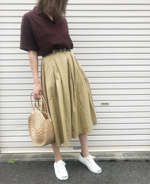 ふんわりボトムス&スニーカーと合わせれば、カジュアルダウンされてこなれた印象に変化! 同系色の小物使いで、モード感たっぷりに仕上がります。