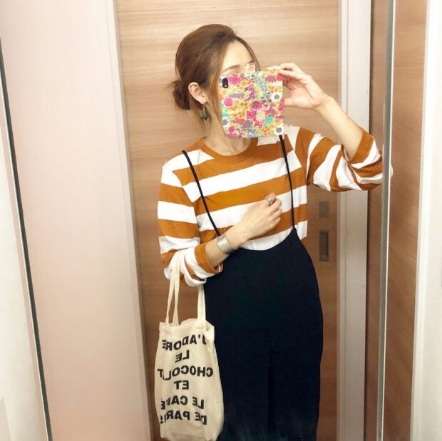 メンズライクなボーダーときれいめサロペットは相性抜群! ギャップのあるあか抜けたコーデの完成です。