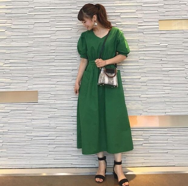 夏にぴったりなグリーン。ヒールが太いので、歩きやすく疲れにくいのがポイント。