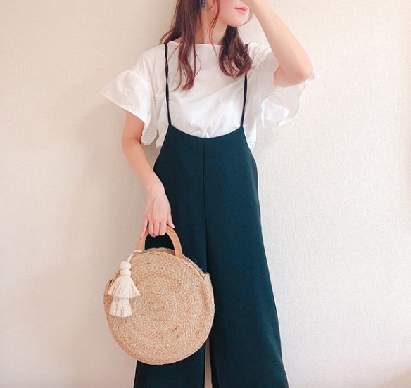 大ぶりのフリルが、二の腕を自然にカバーしてくれる1枚。いつもよりワンサイズあげて肩を落とすように着こなすと、細見え効果がUPします。カラーはオフホワイト、ブラック、イエロー、ブルーの4色展開。価格は1,490円(税別)です。