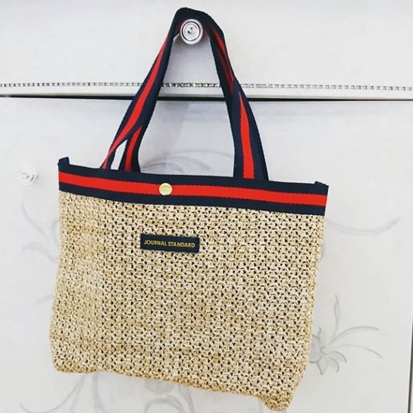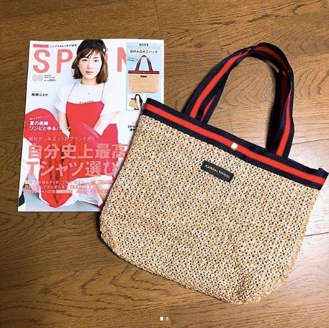 雑誌「SPRiNG 」8月号は、毎年恒例のかごバッグ付録。今年はブランド「ジャーナル スタンダード」とのコラボレーション。夏らしいバイカラーのベルトが目を引く、女性らしいデザインです。バッグの真ん中には、「ジャーナル スタンダード」のロゴ入り。