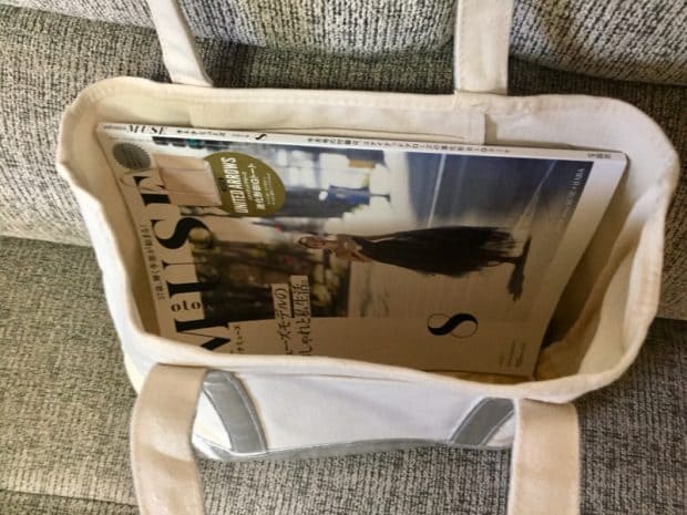 2017年にも同デザインのトートが付録として登場していましたが、今回はサイズ感がアップ。さらに持ち手も長くなり、肩にかけやすくなったんです。